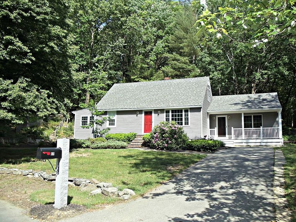 This great oversized cape located on the end of a cul-de-sac is in the Marsh School District. This home nestled in the woods offers 8 rooms, 3 bedrooms, 2 full baths, new roof, four season porch,deck, front porch and vinyl windows. Walk into your family room with many windows which soak the room with natural sunlight and a gas fireplace to enjoy during the winter months. Kitchen and dining room open into each other. The dining room is oversized and fits 10 people. The four season porch is new and has plenty of windows, recessed lights, and double doors to a private deck looking at a private green backyard. The first floor also has one bedroom. This home is truly a gem, secluded and private, but yet close to major highways, community amenities, New Hampshire, and the seacoast.