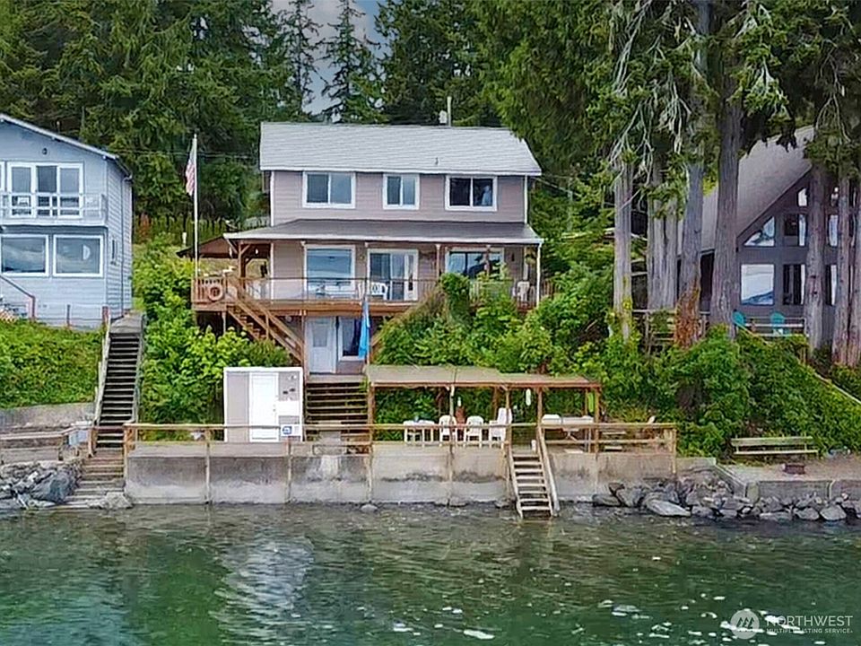 Hood Canal waterfrnt home on amazing lot. Expansive views from grt ktchn & brkfst nook, cozy FR accntd w gas fp & opening to huge deck grt for entertaining. Upstairs a large primary ste & other bdrm is large & both are graced w amazing water views. Lrge utility w room for a freezer & adjacent bth, an unfinished basement for beach eqpmnt & water toys. Easy access to the beach w a bulk head & a crab shack w water, power & a fire pit for cooking. Olympic Canal Club has Hood Canal tidelands, park, clubhouse & boat launch. (Duplicate listing to MLS #2354086 with shop on 2 lots, 42’ X 48’ shop w 3 doors, one 12’ tall for an RV, w power, wd stove, potential ADU priced at $250,000) Close to Brinnon & Pleasant Harbor Golf Course coming soon.