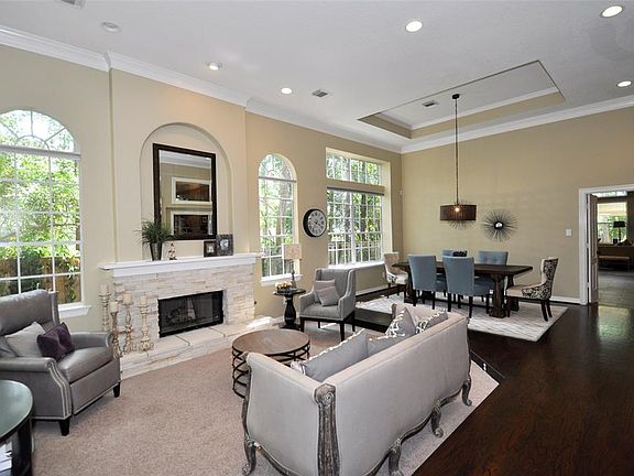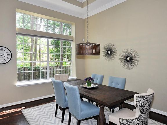 Stunning! A rare find on a large private lot. This home has an open den and formal dining with gorgeous hardwood floors, stacked stone fireplace and a wall of windows. The updated bright white kitchen offers a custom island, granite countertops, a Kitchenaid gas cooktop and tile floors. The sizable breakfast nook includes a built-in bench and two pantries. The recently added double-pane windows is a plus. The private study presents a custom built-in desk and French doors. Located on the upper level is a versatile flex space which can be used as a game room or media room. The backyard oasis features a Pool, two patios, an outdoor bar/cabana with mature trees and plenty of green space.
