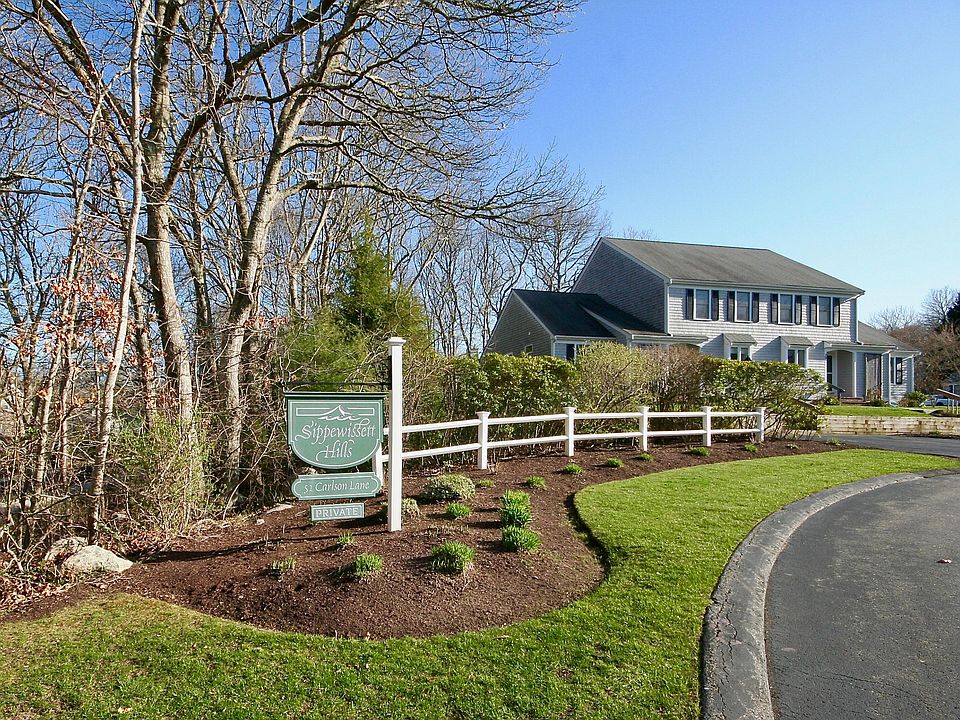 Sippewisset Hills is a beautifully maintained condo development adjacent to the Shining Sea bike path and only 1.5 miles to Falmouth's beautiful Woodneck Beach and .2 miles to Goodwill Park. This Town house style living allows you to enter into the open floor plan with bright kitchen, dining room and living room with corner fireplace and oversized slider leading to private deck with views of the bike path below. This end unit also offers a first floor master suite (currently being used as a den), first floor laundry and two additional bedrooms on the 2nd floor with full guest bath. There is a spacious unfinished basement with 1/2 bath and walkout slider to a private outdoor area with private shed for additional storage. This unit has been meticulously maintained throughout the years and the association is professionally managed making the setting of this home an opportunity not to be missed! At time of closing Buyer to pay two months HOA fees to working capital reserve account.