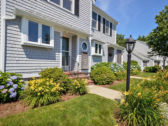 Charming townhouse in Sippewisset Hills right on the bike path and very close to town, salt and fresh water beaches. This tastefully decorated two story home is in excellent condition. The living room with dining area features gleaming wood floors, a corner fireplace and sliders to a private deck, patio and outdoor shower. The kitchen is bright and sunny and next to it there's a convenient half bath. Two spacious second floor bedrooms a private shared full bath plus a finished playroom in the basement offers lots of comfortable space and plenty of storage. Gas warm air heat and central AC. This gorgeously landscaped community and charming condo is a true find. Still time for summer occupancy!