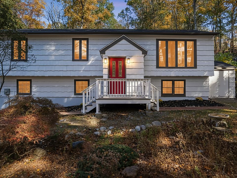 Welcome to this beautifully remodeled raised ranch situated on a peaceful 1.5-acre lot in one of Oxford's most desirable neighborhoods. Just minutes from Quarry Walk's shops and dining, Jackson Cove Park's beach and trails, and the scenic waterfalls at Southford Falls, this location offers both privacy and convenience. Featuring 3 bedrooms and 2.5 baths, this home combines quality finishes with thoughtful design. The open-concept main level showcases a custom kitchen with granite countertops, premium custom cabinetry, and a natural flow to the dining and living areas. The sunroom with vaulted ceilings opens to a large deck overlooking the private backyard, perfect for outdoor gatherings and relaxation. The primary suite features a custom bathroom with elegant tile work and premium fixtures. Hardwood and luxury vinyl floors run throughout, providing both beauty and durability. The lower level includes a family room or guest suite with a bedroom and half bath, offering flexible living space. Additional highlights include a new roof and a newly paved driveway. All permits have been properly pulled, including for the new septic tank, and full approvals will be delivered before closing. Move-in ready, this home represents comfortable and dependable Oxford living.