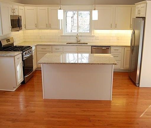 - Kit Dscrp: Dining Area, Flooring - Hardwood, Countertops - Stone/Granite/Solid, Kitchen Island, Stainless Steel Appliances, Open Floor Plan, Recessed Lighting, Remodeled, Exterior Access, Bathroom - Full