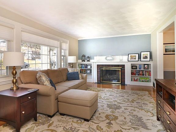 Meticulous condition Garrison Brick Front Side Entrance Colonial situated on a fabulous lot on a quiet friendly cul de sac, close to highway access and Legacy Place! Walk to commuter rail (Westwood line). This lovely, well-cared for home with neutral décor and gleaming hardwood is in move-in condition. Sunny living room has gas fireplace for those long winters. Dining room with corner hutch leads to three season porch overlooking large sun-filled backyard. Light and bright kitchen with granite counters and new SS appliances, newly renovated half bath and mudroom/breezeway to attached garage. Second floor offers 4 spacious bedrooms, including master bedroom with bath and generous closets/storage. Finished playroom in basement with direct walk-out to level backyard. Gas furnace (2001), central air (2008), roof (2001), and many upgrades including Hunter Douglas window treatments, leafguard gutters, fully insulated in 2015. Seller to credit buyers $5000 toward exterior painting.