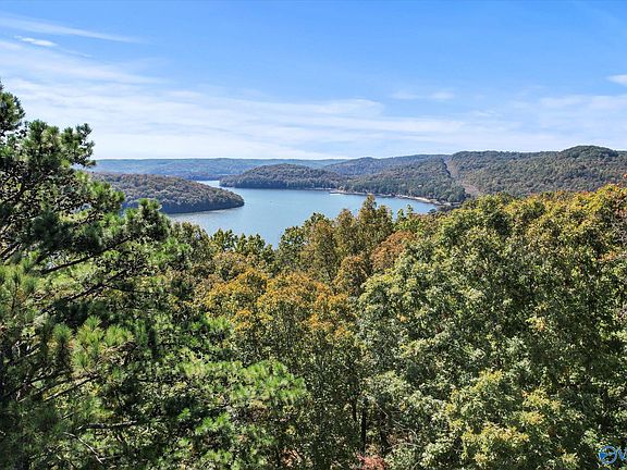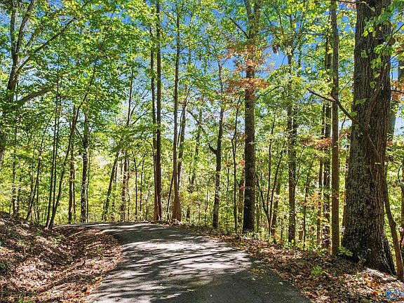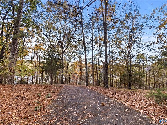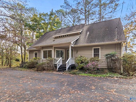 Nestled on a hillside in the woods, with a wonderful water view when the trees drop most of their leaves, you will fall in love with this delightful and comfortable home with a super location. It's just uphill from Lake Guntersville, if fishing or boating are your thing and if you want to shop or indulge in fine food, an easy commute to Huntsville. It has 3 bedrooms, 2 1/2 baths, with a very appealing entryway and generous spaces.The primary bedroom and bath are on the first floor. The kitchen is oversized and brightened by a wealth of windows with plenty of room for a kitchen table. Washer and dryer remain. There's a detached 2-car garage, with usable space upstairs.