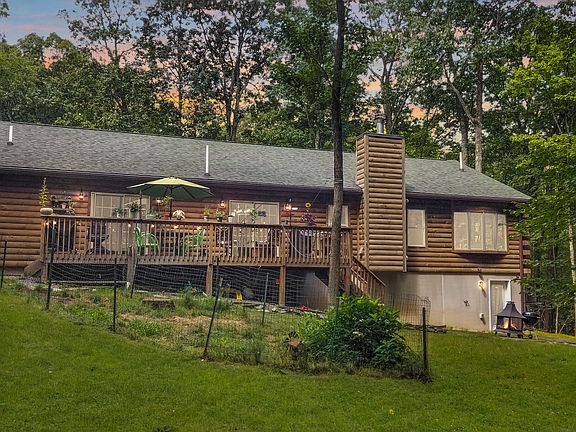 Beautiful LOG SIDED HOME in prestigious Cove Point Club at LAKE WALLENPAUPACK w/BOAT SLIP. Situated on a 1.86-acre wooded lot, this well-maintained ranch home features an open floor plan. The main level offers a sunroom w/cathedral ceiling w/large windows, spacious gourmet kitchen w/breakfast bar, dining area w/sliders to the back deck, living room w/stone fireplace, 2 bedrooms, full bath and laundry on one side w/spacious primary bedroom, ensuite bath and walk in closet on the other side for privacy. Access the back deck from the dining area or primary bedroom. Bright spacious rooms. Beautiful floors, recessed lighting, upgrades galore, covered front porch, full finished walk out basement w/half bath. So much room to entertain. Landscaped yard. Stone patio.2 car garage. Great location!, Beds Description: Primary1st, Baths: 1/2 Bath Lev L, Baths: 2 Bath Lev 1, Baths: Modern, Eating Area: Dining Area, Eating Area: Modern KT, Beds Description: 2+Bed1st
