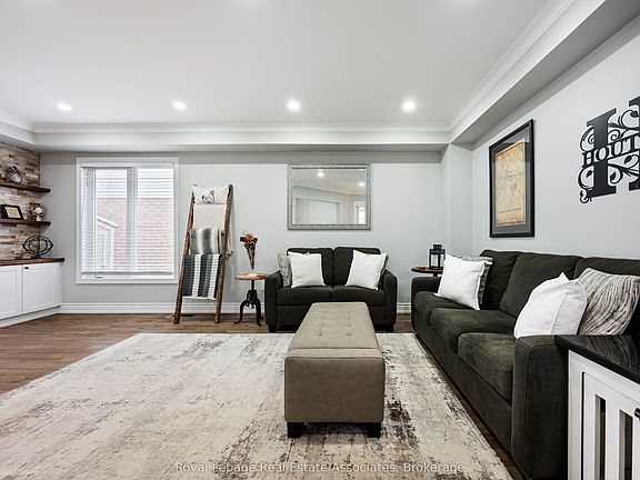 This beautifully upgraded 4-bed, 4-bath detached home is nestled in one of South Georgetowns quietest and most sought-after neighbourhoods. This home is located just steps from trails, parks, schools, and the Gellert Community Centre, offering everything you need for an active family lifestyle. As you enter, the living room greets you with a warm, inviting atmosphere. Large windows fill the space with natural light, highlighting the rich hardwood floors and tasteful finishes. This elegant space is perfect for family time, unwinding after a busy day, or entertaining friends. Every detail has been upgraded, from the hardwood floors that flow seamlessly across all levels, to the crown moulding, accent walls, and LED pot lighting throughout. The open layout is enhanced by smart-home features, including Wi-Fi lighting and switches, a smart thermostat, and smoke detectors that integrate with Google or Alexa. The bright, spacious eat-in kitchen boasts modern finishes, including a countertop gas range, ample counter space, and a kitchen island perfect for family gatherings. Upstairs, the recently renovated bathrooms offer a touch of luxury, including a Jacuzzi tub in the main bath. The primary bedroom features a walk-in closet with custom organizers and an upgraded private ensuite. The fully finished basement adds valuable living space, with a bedroom, three-piece bathroom, laundry room with storage. The lower level also offers the perfect space for cozy family movie nights, featuring a built-in projector screen. The exterior is equally well-maintained, with a concrete walkway & patio, and driveway parking for 4 vehicles. The attached two-car garage is fully insulated, drywalled, and heated, with epoxy flooring, built-in shelving, and hot and cold water access. Outdoor living is effortless with a natural gas line for your BBQ and fire table, soffit lighting, and a sprinkler system. This turn-key home must be seen in person to truly appreciate its upgrades.