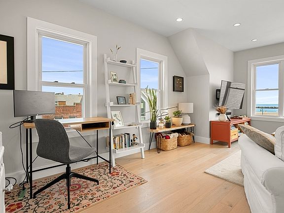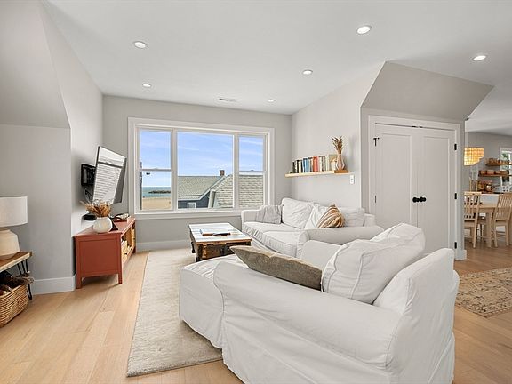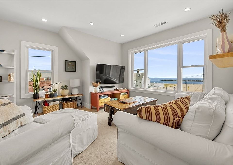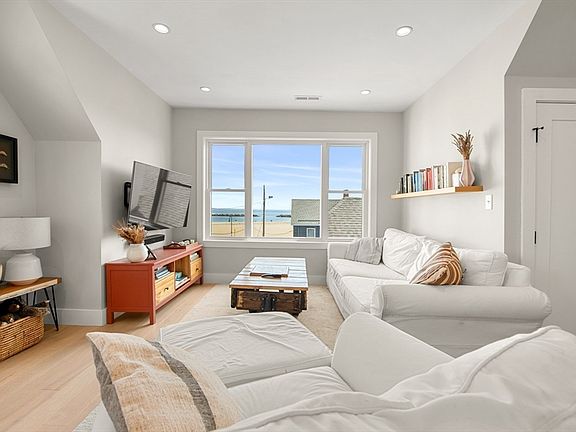 Enjoy turn-key living just steps from Winthrop Beach! This stunning condo blends seaside tranquility with modern comfort. A dramatic picture window in the living room frames sweeping ocean views, filling the home with natural light and salt air breezes. Sun-filled open spaces feature hardwood floors and a coastal-modern design. The chef's kitchen offers sleek cabinetry, high-end appliances, and a spacious layout for everyday living and entertaining. The large primary suite provides a private retreat with a spa-inspired bath. Year-round comfort comes with central heating and A/C, in-unit washer and dryer, plus the convenience of off-street parking and private basement storage. An exclusive-use detached garage conveys, providing valuable, flexible utility. Whether a full-time residence or a weekend getaway, this home delivers the rare combination of coastal charm and easy urban connection with direct access to Boston by train or ferry. Luxury, location, and lifestyle meet at the beach.