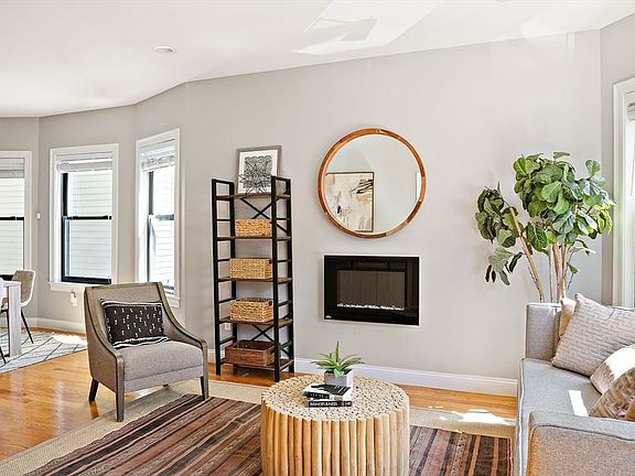 Nestled on a tree-lined street in North Cambridge, this inviting 2-bedroom, 2-bath condominium offers the perfect blend of comfort and character. Sun-filled rooms with tall ceilings and hardwood floors create a warm and welcoming atmosphere, while the open layout flows seamlessly between the living, dining, and kitchen areas. The well-appointed kitchen features stone countertops and stainless-steel appliances, opening to a spacious dining area and a cozy living room with an electric fireplace. The primary suite includes a full bath and walk-in closet, providing a private retreat, while the second bedroom offers flexibility for guests, a home office, or study. With central air, in-unit laundry, ample closet space, and outdoor common areas, this home is designed for everyday ease. Just moments from Davis Square, Alewife, and the Minuteman Bike Path, it perfectly combines neighborhood charm with city convenience.