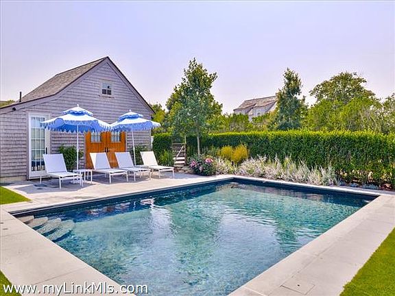 Sophisticated 6 Bedroom Estate with courtyard style architecture near town with private pool set on over a half acre of land adjacent to conservation land with beautifully peaceful setting showcasing big sky views and amazing sunsets. Highlighted features include a soaring 2 story great room with cobblestone fireplace, open to a gourmet kitchen with large island for casual dining and dining area with floor to ceiling windows facing private courtyard with limestone patio. Rustic paneled first floor office/den with fireplace and nano doors that open to courtyard. Spacious and luxurious primary bedroom with second floor deck, his/hers closets & private outdoor shower. Extraordinary attention to detail is apparent throughout with ship-lap, custom mill work, wood beams, barn door and indoor/outdoor river-stone shower. Fabulous entertaining spaces both inside and out, a true destination property with in-ground swimming pool & cabana with wet-bar, regulation bocce court and separate hot-tub for year round use!