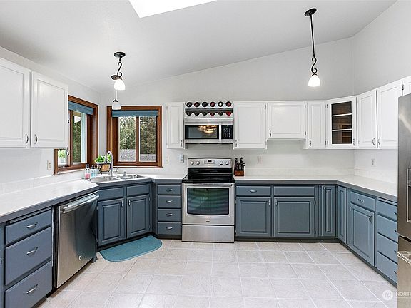 Enjoy views of Mt. Rainier and Case Inlet from this magnificent home situated in the highly desired Lakeland Village Community and just minutes from local restaurants. This gorgeous lot offers mature landscaping and private gazebo to grill and enjoy the views. Spacious updated kitchen, vaulted ceilings and an open concept living room with skylights to bring natural light throughout the home. Bonus rooms and the 2 bay garage offers added space for your cars and room for a home office. Ready to play golf? Your chance to golf a 27 hole PGA course is right here in Lakeland Village! Or try swimming and fishing in the private 50 acre, spring fed lake. This friendly community has so much to offer!