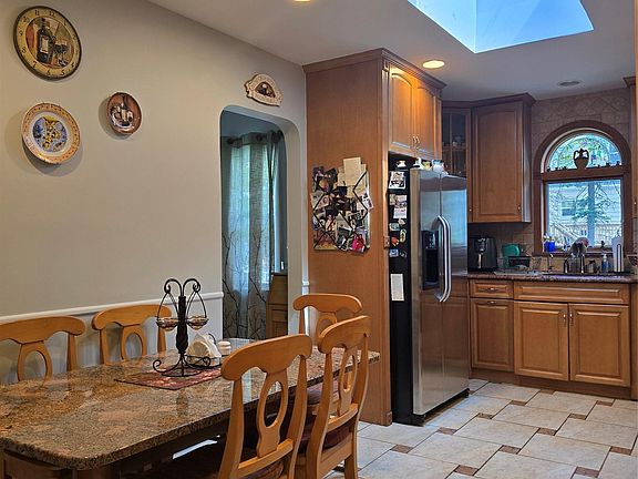 Step inside to a spacious living room with a dining area, freshly painted for a bright and welcoming feel. The kitchen features stainless steel appliances, granite counter top, eat-in area and skylight window, bringing in natural light for a warm cooking and dining experience.