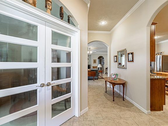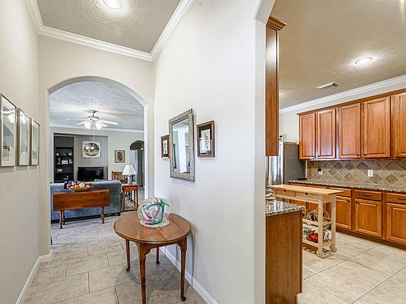 Wonderful home in the gated over 55 community of Woodlands Windsor Lakes. The home features 2-bedrooms 2 baths with many updates including roof in 2022, extended patio with retractable awning (hand crank) slate sidewalk, raised garden and an oversized lot. The primary bedroom features carpet, ceiling fan, en-suite bath with dual sink vanity & standing shower. The home has an open floor plan with tile in the main living areas to include the kitchen opening into the dining room and family room. The kitchen features granite counters, breakfast bar, ss dishwasher, ss microwave and ss dual sided sink. The home office also features tile floors, French doors, crown molding and ceiling fan. The home also features a split floor plan with the secondary bedroom off the main entry of the home and the primary bedroom on the other side of the living room. The family room overlooks the back patio and yard. The back patio has a hand crank retractable awning, with extended slate patio and walkway.