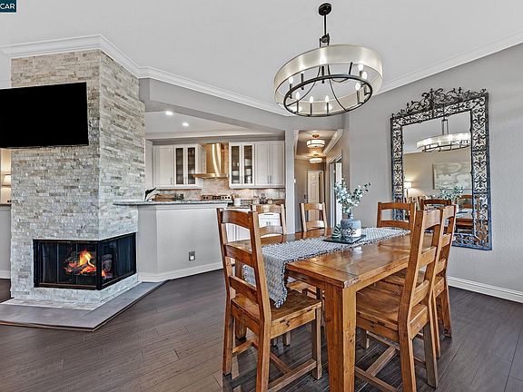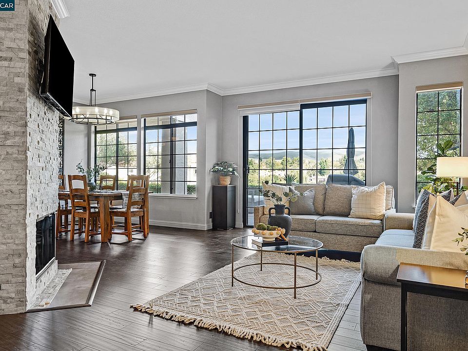 Welcome to this beautiful first-floor 2-bedroom, 2-bathroom condo in the highly sought-after gated community of Canyon Lakes in San Ramon. This beautifully remodeled single-story condo offers effortless living with stunning lake views right from your private patio. Step inside to find hardwood floors and a tastefully updated kitchen featuring modern finishes, sleek countertops, and a large walk-in pantry — perfect for the home chef. Relax in the spa-like primary bathroom, designed with luxury and comfort in mind, or unwind by the gorgeous updated fireplace that serves as the heart of the home. Additional upgrades include a new furnace and A/C, ensuring year-round comfort and peace of mind. Enjoy the convenience of a well-maintained community where the HOA covers water, trash, and sewer, and take advantage of the peaceful walking paths, manicured grounds, and resort-style amenities that make Canyon Lakes so desirable. Experience serene lakefront living and modern comfort — all within minutes of top-rated schools, shopping, dining, and golf courses.