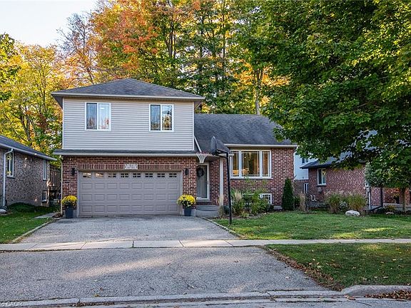 Beautifully Updated Family Home in a Great Neighbourhood! Welcome to this spacious 5-bedroom, 3.5 bath side split with the perfect layout for family living. Renovated in 2021, this home features a custom kitchen with quartz countertops, updated bathrooms with new quartz surfaces, and new flooring throughout. The primary bedroom includes a private ensuite and walk-in closet, with three additional bedrooms and a full bath on the upper level. The cozy family room with a gas fireplace opens to a finished deck and hot tub, ideal for relaxing or entertaining. The finished lower level offers a rec room perfect for a kids’ hangout or playroom, a fifth bedroom or home office, and a third full bathroom. The large, fully fenced yard with mature trees provides privacy and plenty of space for kids and pets to play. Additional highlights include an attached double garage, a newer roof (2015), and a furnace (2019). Conveniently located near excellent schools, parks, walking trails, and amenities. Easy access to Highways 7 & 8 makes commuting to Kitchener, Waterloo, and Stratford a breeze, and you’re just 15 minutes from The Boardwalk shopping area. Don’t miss this exceptional home in a sought-after neighbourhood!