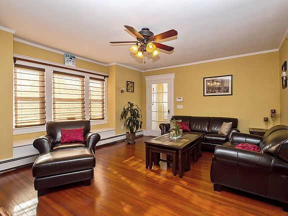 GREAT VALUE in this home! 5 generous Bedrooms and 2 Full baths! The Open Floor Plan of the Main Level features spacious LR with wood burning Fireplace, oversized DR with window seat, Den/Playroom, Eat-In-Kitchen with marble flooring, 2 large bedrooms and one of the 2 Full Baths! Recently refinished Hardwood Floors and Freshly Painted (2012)! Upstairs boasts 3 more bedrooms and another Full Bath. Ample closet space! Window A/C's. HW Heater (2010). Escape out back to paradise.paver patio leads to fenced in Sylvan heated pool and 6 person Jacuzzi. Storage Shed sits nearby pool. 1 car detached garage. Unfinished basement with laundry, utility room, and storage areas. Conveniently located near NYC transportation, schools, shopping and major highways!