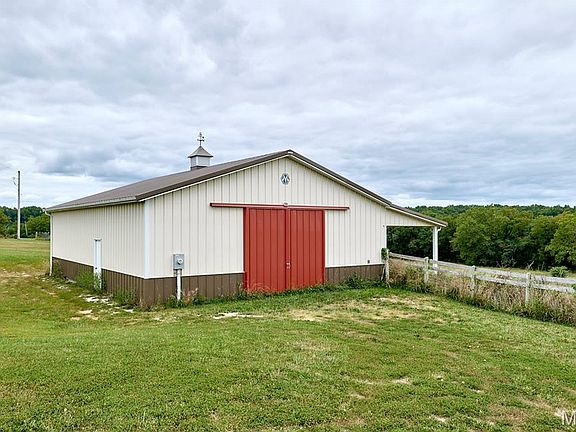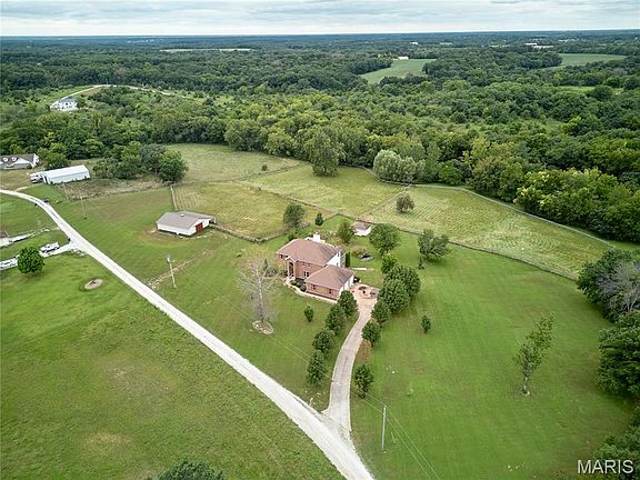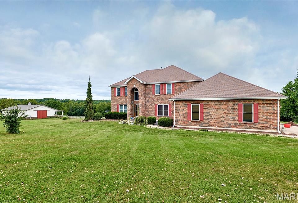 Custom built 2-story home on 10.64 acres with three fenced pastures and huge 4 stall horse barn and another small shed-Master bedroom suite on the main floor, master bath features garden tub, separate shower and dual sinks-Main floor includes open eat in country kitchen with 42" oak cabinets, Silestone counter tops, huge breakfast bar, walk in pantry and walks out to covered deck-Great rm boasts cathedral ceilings and wood insert fireplace. Formal dining has beautiful hardwood flooring. Upper level includes 3 bedrooms and loft that overlooks the great rm on the main floor. Jack and Jill bath between 2 of the bedrooms and the 3rd has its own private bath. Lower level walkout is mostly finished with lots of room for entertainment and recreation also has full bath and an exercise room. Lots of room in the 3-car oversized garage with work area. Great location 30 min from Wentzville!!-newer windows installed approx 8 years ago