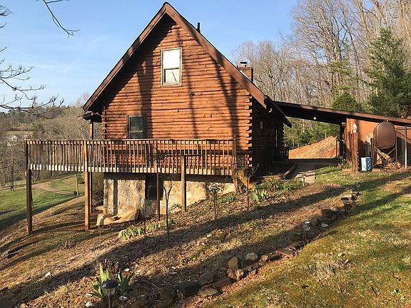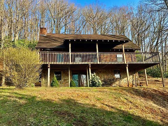 Rare find! A log cabin with Mayo River access located in the town limits of picturesque Stuart Va, at the foothills of the Blue Ridge Mountains. From the wrap-around deck, you'll enjoy a view of the mountains and the (trout stocked) North fork of the Mayo River. Inside you'll find the kitchen, Great Room, and dining area included in an open floor plan and 20' cathedral ceilings, and 6ft windows in the great room. Also, a bedroom and full bath are on the main level. Upstairs there is a loft area that could be used for a 3rd bedroom, but is currently used for office space. There is also another bedroom upstairs. Ceilings are cathedral style, with tongue and groove boards. The house boasts hardwood, laminate, and new luxury vinyl plank flooring. The basement has curtain partitions and luxury vinyl to create extra sleeping space. This home would be a great permanent home, vacation home, or Airbnb. Outside there are various flower beds, a bird bath, and a nice path leading to the river.