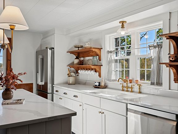 Step back in time to an era of craftsmanship and charm in this colonial style treasure, where wide-plank floors and a majestic center chimney anchor timeless elegance in this welcoming country home. Built in 1946 by Maine author John Gould known for his quintessential storytelling in 30 published books and columnist. In his book 'The House Jacob Built' (Gould's great grandfather) Jacob Gould built the original house on this lot in 1780 which later burned in a fire. The current home is a replica of the original house in the book and was occupied by Gould and his family from 1946-1973. Original forged hardware on doors and numerous built in cabinets. With a wide center foyer leading to all rooms on the main level and a stairway to upstairs gives this house a wonderful flow. Bright rooms, new replacement windows throughout house in 2025, main floors have been refinished, new tile floors in kitchen, mud room and bath, new interior and exterior lighting. The grand great room has refinished red oak flooring and fireplace. A stunning country kitchen with built in place cabinets, new stainless appliances, antique cookstove and center island. Once a writing room, the home office is ready to serve your work from home needs. The library is a cozy room just off the foyer and is filled with books and is ready for you to enjoy. There is a spacious workshop off the attached carriage house which gives you a glimpse of days gone by. Upstairs there is a spacious reading nook with a built in magazine rack and steady stream of sunlight to enjoy a lazy afternoon with a good book. There are 4 spacious bedrooms all with large closets and built-ins. The updated 2 full bathrooms have ample space for your bathing needs. There is a large walk-in attic off the primary bedroom with future claimable living or work space needs. The barn has ample room on the main level and lower level for horses, goats ect. Once a thriving flower and vegetable farm this could be your gentleman's farm.