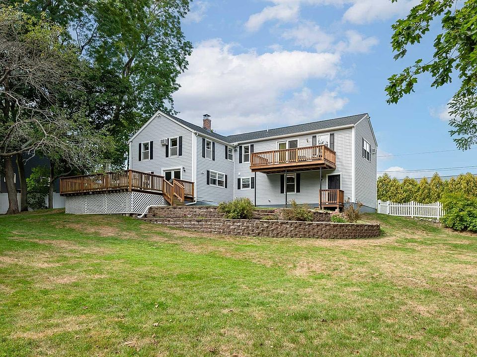 At the end of a peaceful lane, this 4–5 bedroom home delivers a lifestyle hard to find in Portsmouth - natural privacy, generous space, & close-to-everything convenience. Enjoy sidewalks to downtown Portsmouth (1.7 mi.) the West End neighborhood (1.5 mi.), & quick access to Newington shopping & major commuter routes. This move-in-ready home sits on a large, private lot abutting 4 acres of municipal greenspace, including a softball field & room for other sports & play. Mature trees & thoughtful landscaping provide natural privacy & a serene setting for all your backyard gatherings. Inside, a welcoming entry opens to hardwood floors, abundant natural light, & open-concept layout. The kitchen shines with brand-new appliances, granite countertops, direct access to the back deck, & seamless flow into the dining and living rooms. A laundry area & half bath complete the first level. Upstairs, the highlight is an impressive 30’ x 20’ primary suite with an ensuite bath, two closets, & a private deck overlooking the backyard, creating a personal retreat. Three to 4 additional bedrooms provide flexibility for family, guests, or office space. Practical features include a heated, oversized 2-car garage, two driveways for extra parking, a storage shed, a 2024 roof with lifetime transferable warranty, and three new wall A/C units (2024). This property perfectly balances comfort & convenience, offering space rarely available so close to Portsmouth’s vibrant heart. OPEN SAT. 10/11, 10-12pm.