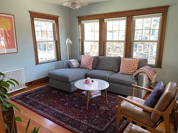 ** Available August 2022-July 2023** Fully-furnished, family-friendly 1850 sq ft. unit in a quiet residential area of West Cambridge. This bright and spacious 4 bed/2 bath unit is located on the second and third floors of a two family house within walking distance of Huron Village and Fresh Pond, and less than a mile to Harvard. Walk to Formaggio Kitchen, Whole Foods, Danehy Park, or local boutiques; or take the 15-min stroll or quick bus ride to enjoy the bustle of Harvard Square. The main level boasts an open floor plan from front to back -- perfect for entertaining-- ending in French doors leading to a large front deck overlooking the tree lined street. Enjoy wonderful sunset views on the rear deck as well. The main level includes a bathroom with claw foot tub and two bedrooms, either of which can also be used as an office or TV room. The top level has two additional bedrooms, each with their own walk-in closets (large enough to be used as remote-work spaces), and a full bath. The shared side yard includes a new fence installed in 2021, grill, and outdoor furniture. Other amenities include fully-stocked kitchen, A/C mini-splits in main living area and bedrooms, a gas fireplace, hardwood floors, built-in bookshelves, in-unit laundry, and a fantastic balance of open living space and private rooms. The unit includes TWO off-street parking spaces, basement storage, and outside shed for bicycles or gear. Available 8/1/22 - 7/31/23; one-month security deposit requirement Owner pays for water, sewer, and trash Tenant pays for electric, gas and internet Please inquire about pets No smoking Two off-street parking spots