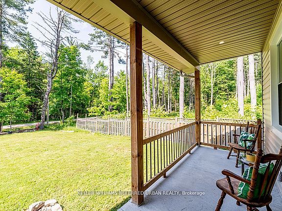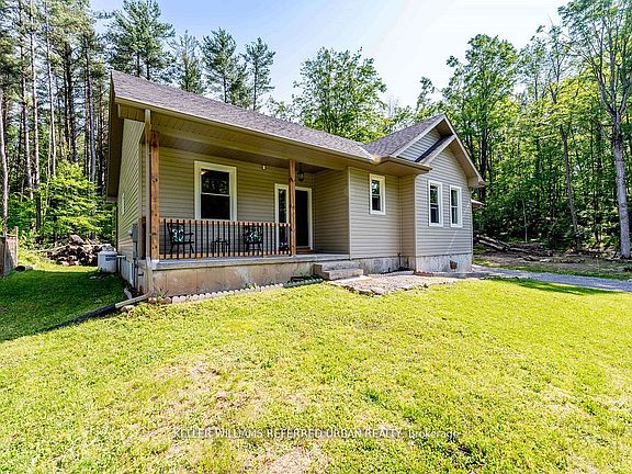 Welcome to this 1,700 sq. ft. bungalow, built in 2020, located in Trent Hills on a very private 1.24-acre lot surrounded by mature trees. This single-storey home features 3 bedrooms and 2 bathrooms, with 9-foot ceilings, gleaming hardwood floors throughout and a composite back deck overlooking the wooded backyard. The modern open-concept living and dining area offers plenty of natural light and backyard views. The kitchen includes stainless steel appliances, a centre island, and ample storage & counters space. The king-sized primary bedroom features a walk-in closet and a 5-piece ensuite bath (with rough-infor separate shower). The spacious second and third bedrooms are ideal for family or guests or a home office. The full basement offers In-Law suite potential. It features, a cold cellar, large windows, and is ready to be finished with a rough-in for a kitchen,bathroom, and woodstove. The entire house is wrapped in foam insulation and includes a 200-amp electrical panel. The attached 2-car garage offers 13.3-foot ceilings and a dedicated workspace, ideal for storage, hobbies, or vehicle collectors. As a bonus, the property includes deeded access to a private waterfront beach area on Crowe River, perfect for swimming, kayaking, and other recreational activities. Very close to shopping and restaurants. Only 10 mins from downtown Campbellford (new YMCA and future Hospital) and 15 Minutes from Marmora and Havelock. This home offers, privacy, and the peaceful lifestyle of rural living. Come fall in love!