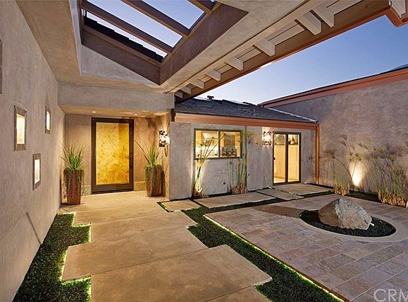 Finest in condo living! This approximately 2,700 square feet one level residence with open flowing floor plan affords you the space, privacy and enjoyment of a single family home with breathtaking ocean, Catalina island, harbor and city light views. Amenities include marble floor, wireless window shades, 4 skylights, 2 fireplaces, Built-in shelves and desk, built-in entertainment center, designer fountain, fire-pit, jacuzzi and waterfall, awning and stunning landscape. This model perfect residence is located within a gate guarded and exclusive community of Harbor Ridge, in the heart of Newport Beach with verdant view and peaceful outlook. Offering 3 bedrooms, 2.5 bathrooms, a grand foyer, open living /dining area, 14 foot soaring ceilings with skylights and designer touches throughout. Gourmet kitchen featuring top-of-the-line stainless appliances, an island, granite counter top, upgraded built-in cabinets and glass nook table, volume ceiling with two skylights looking out the beautiful courtyard. Master suite boasts volume ceiling, fireplace, marble spa tub, steam shower, walk-in closet and a spectacular ocean and city light views. Beautiful zen-like landscaped yard, compliments this modern style residence and makes this property ideal for large-scale entertaining and indoor-outdoor living at its best.