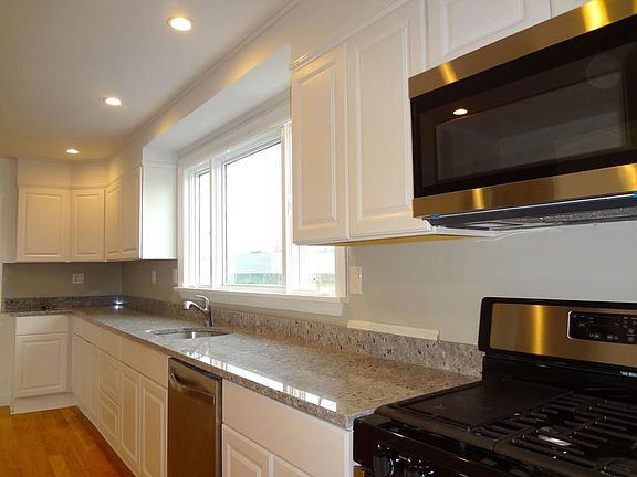 New! New! New! Stunning top to bottom renovation on this huge single family home steps from MBTA bus line to everywhere! Flexible floor plan includes 5 bedrooms! First level offers new hardwood floors thru-out with a spacious, open floor plan; large kitchen & dining area includes new granite counters, cabinets, recessed lighting and stainless steel appliances; ceramic tile full bath with soaker tub; a large formal dining room or living area, first floor bedroom and a beautiful sun room with jalousie windows. Second level offers a 2nd ceramic tile full bath with washer/dryer hook-up, 3 generous bedrooms with new hardwood floors, plus a master bedroom with ceramic tile shower & pebble floor en suite. Gorgeous, freshly painted neutral color pallet thru-out. New Roof & New Windows (most)! New PVC fencing! Central A/C! Off-street parking! Walking trails & community garden! Don't miss out on this truly amazing home!