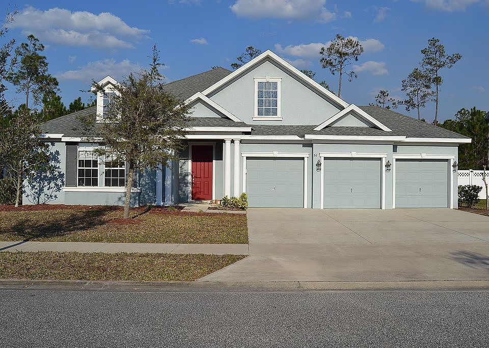 WOW! Currently the lowest priced 4 bedroom, 3 full baths and 3 car garage home, with over 2,500 sq.ft. of living area, in Ormond Beach. Block construction, over 2,700 sq.ft. of living, 42'' cabinetry, lots of tile, center island kitchen, 9' 4'' ceilings, a master closet the size of a room... The grand entrance hallway will empress. Backing to wooded area for privacy. Located in one of Ormond's most desirable subdivisions, Hunter's Ridge. 2 community pools, tennis court, club house and miles of side walks for exercise and enjoyment. Also has a conditioned 10x11 room in the garage.