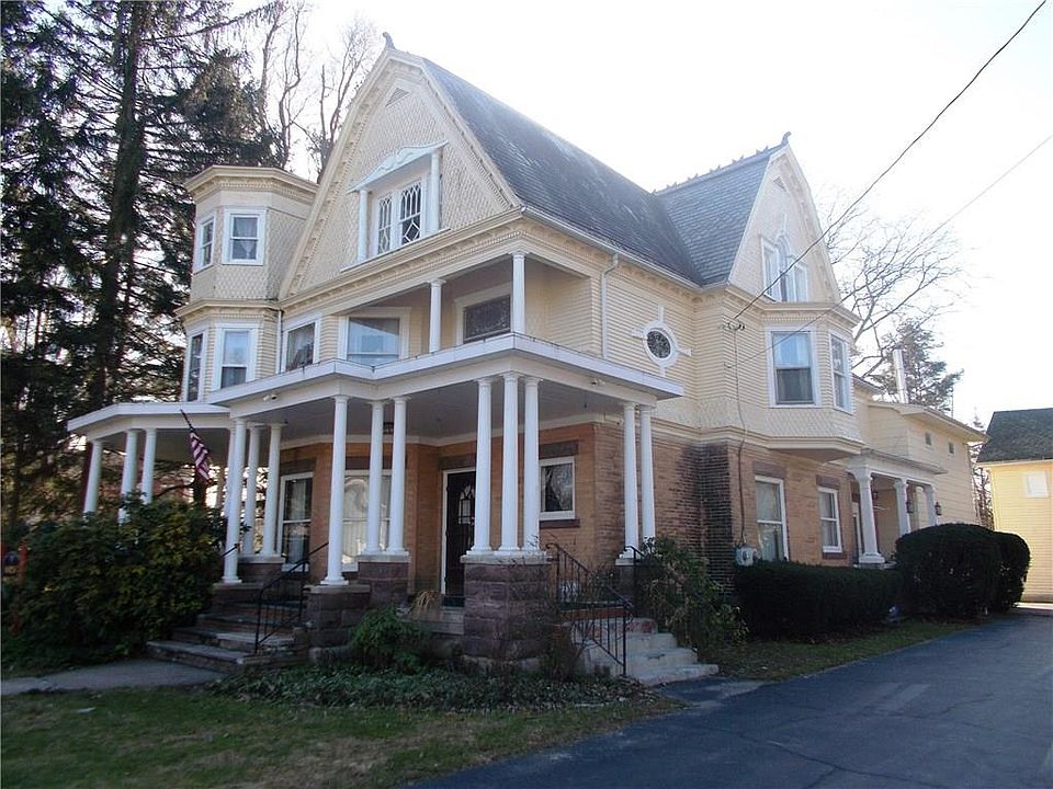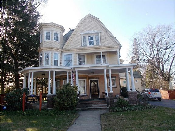 For serious interested parties only. This unique business opportunity in a lovely Victorian home is a small, full functioning funeral home that's looking to transition to the right qualified person/family. First floor business area features hardwood woodwork with grand staircase, hand carved fireplace, hardwood floors under carpets, large office, 2 small bathrooms. Second floor features large family room, full bath, kitchen with new floor, dining area, assorted open area rooms. Third floor with full bath, 4 bedrooms, lots of closets. Exterior w/wrap-around carpeted, newly roofed & rebuilt porch; side entrance w/small porch; original slate roof; deep yard; 2-story barn/garage; double-wide blacktop driveway; basement with 2 furnaces; very reasonable electric; great curb appeal.