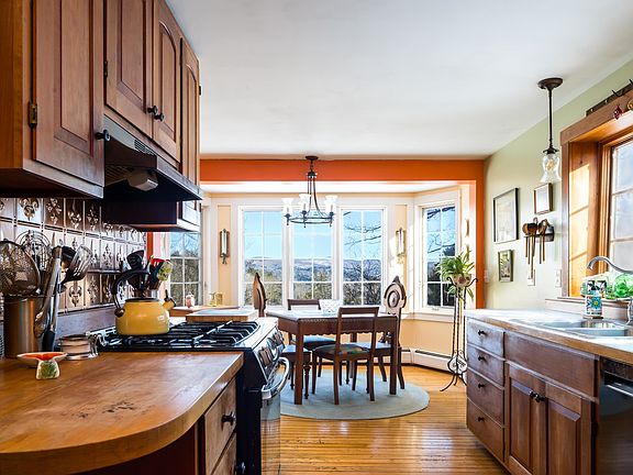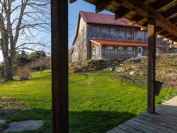 This serene farm allows you to step back in time and feel the warmth and charm of years gone by while living with the conveniences and enjoyment of the present including high speed fiber optic internet service. The inviting quintessential three bedroom farmhouse presents character and charm with beautiful hand hewn beams, wood plank flooring, built-ins, nooks and crannies and sunny and bright living spaces. Listen to the birds while strolling around the lovely established perennial gardens and marvel at nature's beauty at every turn and then sit for a spell while taking in the views from the convenient covered porch, connecting the house to the two car garage with oodles of storage space on the second floor. The home, barn and outbuildings are nestled within hillside beauty consisting of 81 acres, scenic trails, views, rolling pastures, hay fields, and managed woodlands. An abundance of space in the barn and outbuildings offers opportunity for a woodworking shop, studio, exercise room and ideal for accommodating an array of farm animals, hay storage and farming equipment and for garaging vehicles. Bring your hobbies, unique ideas and entrepreneur spirit to take full advantage of all this property has to offer. Or, simply enjoy living right at home within this inspiring Vermont property.