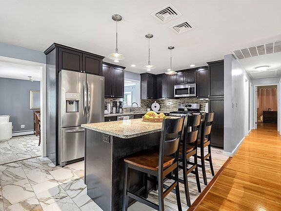 Offers due by Monday 5/20 by 4 pm !Location! Situated in a desirable location this beautiful ranch is more spacious than it appears! The bathroom was updated in 2022.Freshly painted, open floor plan featuring a custom kitchen with granite countertop, bar top kitchen island, stainless steel appliances and tiled flooring. The house has two full bathrooms with Jacuzzi soaking tubs and tiled showers. The fully finished lower level includes a spacious family room with new engineered hardwood flooring, a wet bar with a granite countertop, a custom wine rack and a wine chiller. An additional bonus room with plenty of closet space can be used as a guest bedroom or office. Other features include exterior vinyl siding, vinyl replacement windows, an updated gas heating system, a 200-amp electric panel, and central A/C, two great size sheds, a deck, an irrigation system, a radon mitigation system and great backyard space, large brick patio, wood stove and perfect for entertaining.