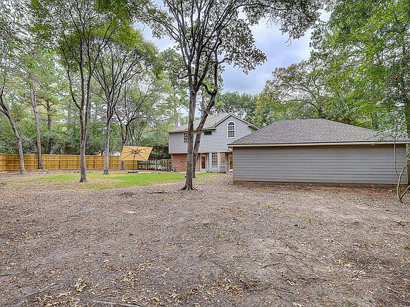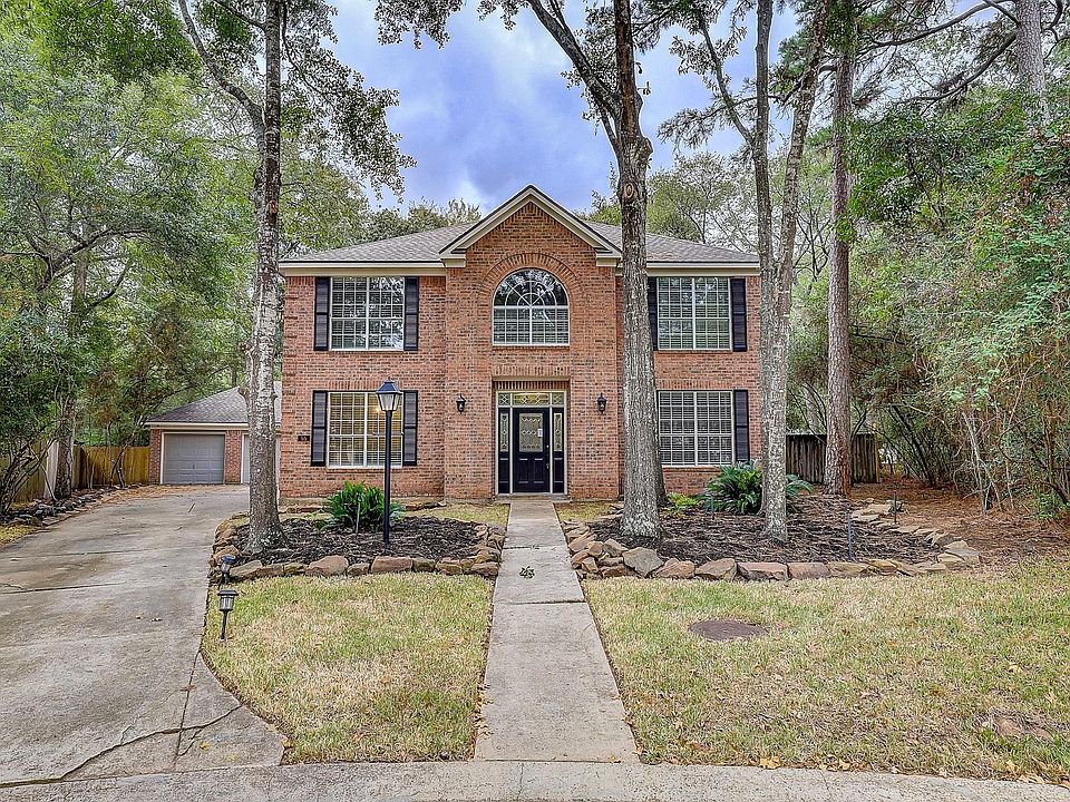 Updated & well-maintained home on a HUGE cul-de-sac lot in The Woodlands golf course community offering wonderful amenities, & quick access to I45. Outside, find lush landscaping, large shade trees, & a long driveway to a detached garage. Inside, offers an open floorplan with lux wood floors, fresh paint, crown molding, decorative lighting, & TONS of natural light. The formal dining & living/home office & half bath leads into the spacious living room w/ great backyard views & a fireplace. Adjacent, find a bay window breakfast nook, utility room, & a large kitchen that boasts ample storage, granite counters, & SS appliances. Upstairs find 3 well-sized bedrooms w/ a full bath & the private primary that includes an en-suite bath w/ dual vanities, a centered tub, separate shower, & a walk-in closet. Also, find a separate flex space off the primary that's perfect for a reading area or home office. Last, check out the HUGE fully fenced backyard ready to add a pool, covered patio, & playset.