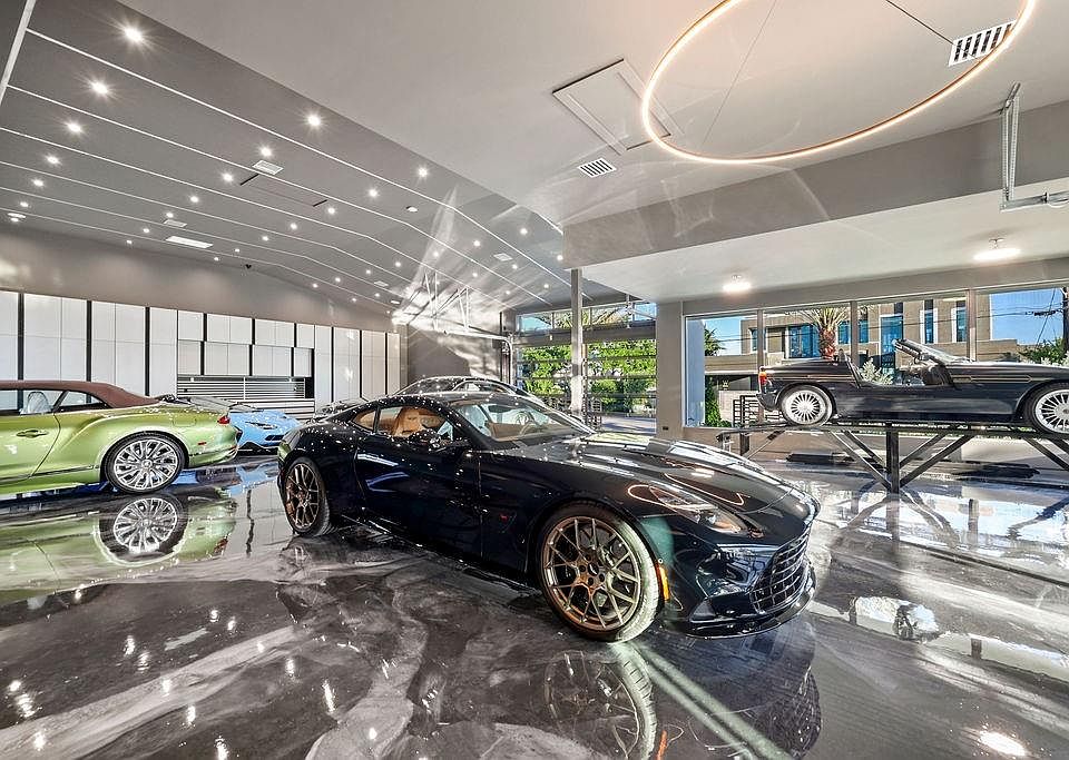 Resort-style poolSleek modern designCustom poolFloor-to-ceiling windowsSummer kitchenShowroom garageState-of-the-art gym
