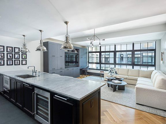 Upon entry, you will be immediately submersed in natural sunlight and will be impressed by the size of the living, dining, and kitchen areas. The living/dining room can comfortably be arranged in many ways to best fit anyone's vision and design to make this their own. In the chefs kitchen, there are top of line appliances such as Gaggeneau refrigerator, Gaggeneau stove and range, dishwasher, built-in wine, La Rochelle Gris marble slab countertops, and custom cabinetry by Aster Cucine. All areas are combined in perfect harmony to either host guests and entertain or for comfortable everyday living.