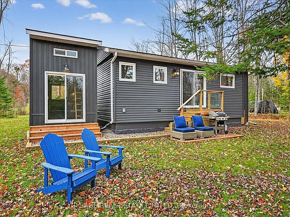 Impeccable quality and design on the Miskwaa Ziibi River. An exceptional complete package perfectly suited for the family cottage country escape. Kayak downstream to Little Bald Lake and the paddling trail. The attention to detail is beyond the norm we see today. The design and décor has flair and style only found in magazines. Weekends and holidays would be real easy in this space. Completely renovated with high-quality materials, fixtures, lighting and appliances. Exquisite furniture and accessories. Two bedrooms, a four-piece bath, open-concept kitchen, dining and living room with modern electric fireplace. High ceilings, large wood beams, tile and vinyl flooring. Main-floor laundry, front porch, back deck and easy access to the River, lower level with storage, utility room, games area, two-piece bath and a spacious tv room. The detached bunkie with loft, is heated and ready for the kids to hang out. Includes outdoor furniture, toys and gazebo. Sit around the campfire River side and enjoy the quiet peaceful essence of being surrounded by nature. There is a flow of casual elegance in the 1200 square feet of living space influenced by the surrounding nature of 125' of river living. Minutes away from the Villages of Bobcaygeon and Buckhorn. Two hours from the GTA. Plenty of snowmobile, hiking, biking trails and boating access near-by. Be in before the holidays and start new traditions for your family.