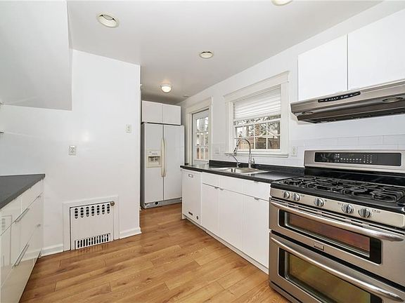 Move in right way to this fresh painted charming sun filled home in Larchmont Woods. Gleaming hardwood floors, living room opens to formal dining and newer kitchen. Doors to Private fenced back yard with flagstone Patio and stone fireplace. Big flat back yard for dogs, kids and family entertaining. First floor master bedroom, guest bedroom and full bath. Second floor features three family bedrooms , full bath and an office/bed room with high ceiling and sky lights.Short walk to Larchmont train station,shops, parks, playgrounds and Barnard Early Childhood Center. 30 minutes train ride to midtown/ Grand Central.School bus stops right at the corner. Enjoy this tranquil and family friendly block.