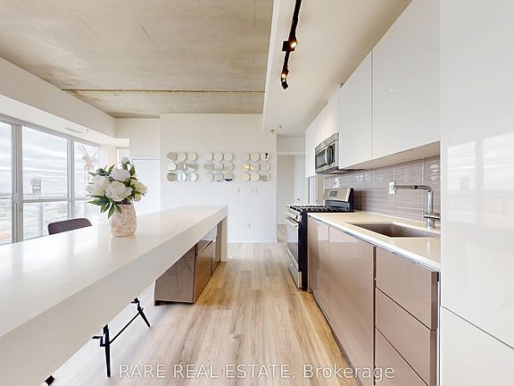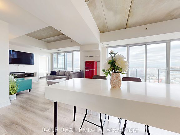 Welcome to boutique living at its finest at 51 Lady Bank Road, Unit 501 - a rare 3-bed, 3-bath residence in an exclusive 18-unit building in South Etobicoke. Originally two pre-construction units thoughtfully combined by the original owner, this is the largest suite in the building, offering an expansive open-concept layout perfect for both everyday living and entertaining. Enjoy a chef-inspired kitchen with a gas stove, oversized island, and exceptional storage. Two bedrooms feature walk-in closets and private ensuites, while the spacious balcony with gas hookup extends your living space outdoors. Includes parking (stacker system) and two lockers for added convenience. Steps to parks, transit, and the vibrant lakeshore community.