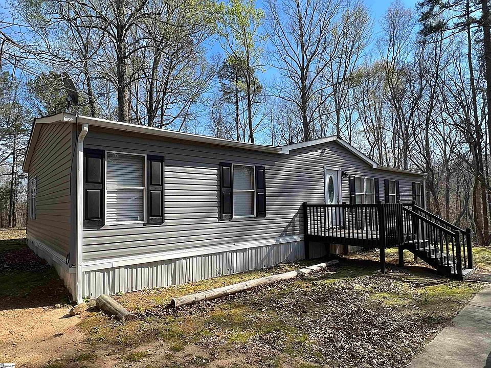 Welcome to your charming retreat in Fountain Inn, South Carolina! This lovely mobile home sits on a spacious 2-acre lot, offering plenty of room to spread out and enjoy the tranquility of nature. With around 1500 square feet of living space, this home has been well-maintained and is in excellent condition. Inside, you'll find 3 cozy bedrooms and 2 full bathrooms, perfect for accommodating your family and guests. The master bedroom boasts a walk-in closet and a full ensuite bathroom complete with a double vanity sink, a full shower, and a separate tub - the perfect spot to unwind after a long day. Step outside and you'll find a large wooden patio out back, the ideal place to host summer barbecues or just relax and soak up the sunshine. The property is surrounded by trees, offering plenty of privacy and seclusion, making it the perfect escape from the hustle and bustle of city life. Don't miss out on this opportunity to own a little slice of paradise in Fountain Inn - schedule your tour today!