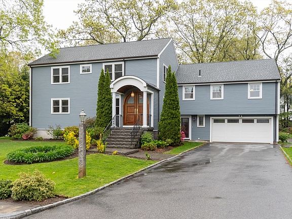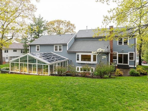Beautifully sited on an almost 1/2 acre lot, this expansive contemporary multi-level home offers four levels of living and includes 6 bedrooms and 5 1/2 baths. Enter from a granite staircase through mahogany doors to a gorgeous foyer, open den and half bath. Entertain in the spacious modern, open concept kitchen (with stainless steel appliances, granite counters/island), sunlit family room with many windows and sliders to a beautiful paver patio and formal DR with fireplace and cathedral ceiling. Upper levels are accessed by a split staircase; one leads to the primary BR with walk-in closet and ensuite bath, two spacious BRs, full bath and laundry closet. The other staircase leads to a 2nd primary with ensuite, two BRs and full bath. Lower levels feature a cozy game room, four-season glass sunroom/solarium designed to grow vegetables or flowers year round, fireplaced family room, and direct access to the 2-car garage.