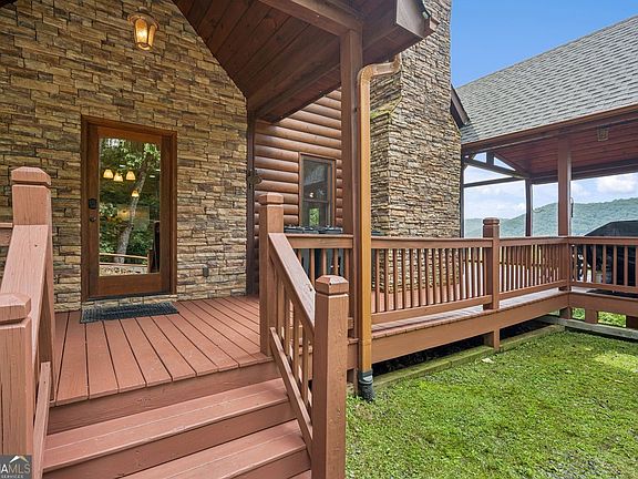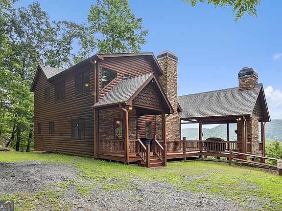 Imagine waking up to the crisp mountain air, with a private balcony just through your French doors, overlooking a serene, wooded landscape. Rental income when you aren't personally enjoying the mountain is the perfect way to offset your mortgage. This charming cabin-style home in Morganton, GA, offers the perfect blend of rustic elegance and modern comfort, providing the ideal escape from the everyday hustle. The main level welcomes you with a cozy great room, centered around a beautiful gas log fireplace, perfect for relaxing evenings. The adjacent kitchen, with its warm wood-stained cabinets and sleek granite countertops, offers a comfortable space for preparing meals. The breakfast area, just off the kitchen, is an ideal spot to enjoy your morning coffee or evening dinners. The main level bedroom, featuring French doors that lead to the back porch, provides a peaceful sanctuary. The bathroom on this level boasts a granite tile floor, a tub/shower combo, and a double vanity. Step out onto your main level porch and gather around the new stone fireplace, creating a perfect outdoor living space for entertaining or unwinding in the mountain air. Ascend to the upper level to discover a spacious owner's suite bedroom with French doors opening to a private balcony. The owner's bath is a spa-like oasis with granite tile, a jetted tub, a separate shower, and a double vanity. A large walk-in closet provides ample storage. A loft on this level offers a versatile space for a home office, reading nook, or creative studio. The lower level is an entertainer's dream, featuring an open rec room with a stone heart, gas fireplace and granite wet bar. A large bedroom with a walk-in closet and access to the lower back porch offers privacy for guests. Through the hall, find a full bathroom with a single vanity and a tub/shower combo, along with a laundry room, completes this functional level. This Morganton home is designed for those who seek tranquility and comfort, or those looking for their next investment. With Starlink Wi-Fi already installed, you'll have fast and reliable internet access, even in this secluded mountain setting. Don't miss your chance to own this slice of North Georgia heaven!
