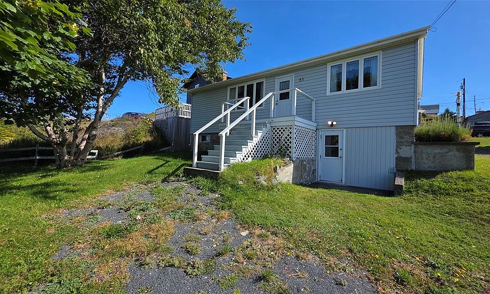 Set in the heart of Twillingate, nestled amongst trees on a quiet lot that runs more than 300' feet, this 3 bedroom home is an ideal starter, retirement home or cottage. The property includes a large shed and a partially finished walkout basement, with plenty of storage, a rec room and workshop. The main floor has a large kitchen that opens to the dining and living room, ideal for family nights or entertaining friends. The living room windows fill the space with natural light and views of the harbour. Two of the three bedrooms also look out to the sea, while the third bedroom and bathroom complete the main floor. A must see, as this home was well maintained, and although dated, it is move in ready!