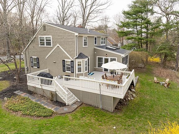 Accepted Offer, OH Sat for back-ups. You're gonna love the flexibility of this deceivingly large and captivating 9 room, 4 bedroom cape! With more than 3,000 sq ft of total living area, the superb floorplan is tailor-made for entertaining, comfort and spreading out! The garage addition allows for a large 1st floor bedroom + family room; either would make an exceptionally nice office! Oak flooring and elegant mouldings throughout. Captivating front to back fireplaced living room leads to the sensational East-facing sunroom which in turn opens right out onto the massive wooden deck. Efficient kitchen has soapstone counters and charming dining area with french door to that magical deck. Thermacore garage doors just installed! New arch shingle roof '21; upstairs full bath gut-remodeled '23. Walk-out basement has slider to under-deck storage. Lush, verdant yard is bordered by weathered stone walls. Proximate to North Scituate Village including commuter rail station, 2 playgrounds + more.