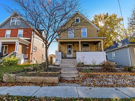 This Yellow Brick, 3 Bedroom, 1 Bathroom, 2-Storey Century home is Full of Character with Beautiful Landscaping ready to Bloom this Spring. The Covered Front Porch leads into the Foyer with high ceilings and original Hardwood Floors. Bright, Spacious Living Room and Formal Dining Room leads into the updated ( 2022 ) Kitchen with Granite and Quartz countertops, water purifier and plenty of Storage. Easy Access to the rear Deck in the partially fenced, fully landscaped, backyard with Shed. Upstairs you will find 3 Bedrooms and a 4 Piece Bathroom with Soaker Tub. Plenty of potential with the great ceiling height in the basement, newer insulation and above grade windows. Private driveway allows for parking multiple vehicles. Newer ( 2022 ) Furnace, Air Conditioning, Water Softener, Purifier and Tankless Hot Water Tank.