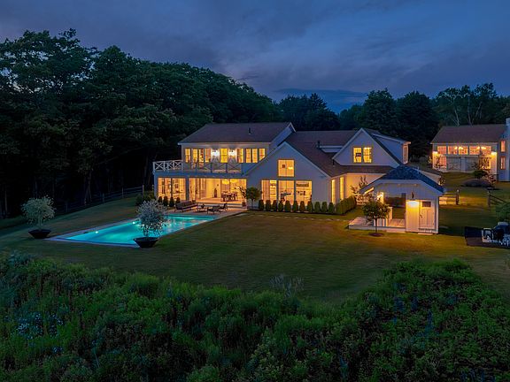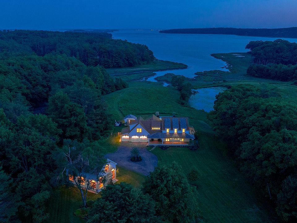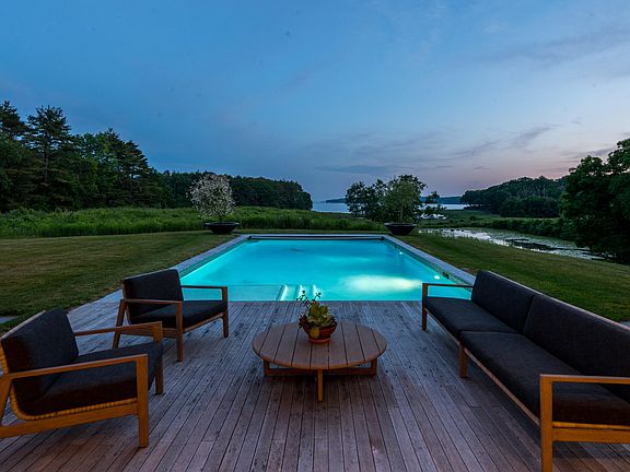 A true seaside sanctuary, 51 Meeting House Farms Road offers the rare blend of luxury and privacy while enjoying a premier Greater Portland location. The property is composed of four structures harmoniously blending with each other, on a 14 acre peninsula stretching towards Casco Bay. With over 6,500 square feet of living space, the main home is thoughtfully designed to welcome the outdoors in with soaring walls of windows and floor-to-ceiling glass doors that open the house to natural light from end to end. The tastefully appointed kitchen is casually elegant, combining high end appliances with textures and woods and extending into a covered outdoor living and dining space, perfect for al fresco entertaining throughout the warmer months. A true retreat, the first floor primary bedroom enjoys a vaulted ceiling, private laundry room, stunning spa-like bath and serene views of open lawn meandering to the open ocean. The second level boasts plenty of elbow room to spread out, including en suite bedrooms with oceanfront balconies sharing a casual bonus room. A 1,500 square foot carriage house is perfect for spillover or long-term guests, and the two-story entertaining barn is ready for your next celebration. Stunning hardscape and landscape embrace the home, and the gunite pool, pool house, and outdoor kitchen round out the property. With southerly views for miles, the home enjoys Maine's fabulous sunsets all year long. Boasting just a two hour wheels-up-to-cocktails-on-the-terrace trip from New York or DC, Yarmouth is thirty minutes from Portland and its award winning arts and restaurant scene, and the Portland International jetport.