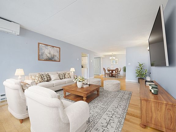 One of the largest one bedroom units at Melrose Towers with 909 square feet all on one floor. This unit is on the first floor so you can access it from the lobby stairs without using the elevator. There are two access doors on either side of the building at ground level that allow entry without any stairs and go straight to the elevator. This unit was renovated from original 7-8 years ago with newer kitchen with replaced cabinets, granite counters and stainless steel appliances, remodeled ceramic tile bath, and a ductless mini-split heat and air-conditioning system. Screened in balcony facing the soccer field. Extra storage space on the ground floor. Parking space 21C in the rear of the building. Melrose Towers is very conveniently located next to the Whole Foods shopping plaza that includes, CVS, Liberty Bell Foods, Anton Cleaners and Rockland Bank. Bus stop is nearby on Main Street for those that don't drive and Melrose Highland train depot is nearby on Franklin Street.