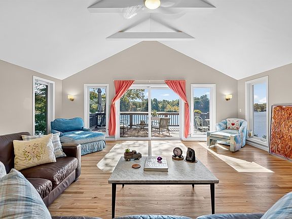 This home truly has it all—waterfront living on Metacomet Lake, a stylish ranch design w/ a spacious addition, & thoughtful updates throughout. Set back on just under an acre & surrounded by lush gardens, the setting is as serene as it is beautiful. Enter inside through the inviting four-season breezeway w/ recessed lighting or the tiled mudroom from the single-car garage. At the heart of the home, a beautifully remodeled kitchen shines w/ an expansive island, quartz countertops, gas range, pop out dining area, & walk-in pantry—seamlessly open to the cathedral-ceiling living rm, where windows & a sliding dr frame tranquil lake views. The primary suite boasts cathedral ceilings & a fashionable ensuite inclusive of a soaking tub & skylight. A versatile second bedrm provides options for guests, a home office, or bonus space. Additional highlights include a relaxing hot tub, a thoughtfully designed dog run, & a level front yard. Here is your chance to own a piece of paradise on the water!