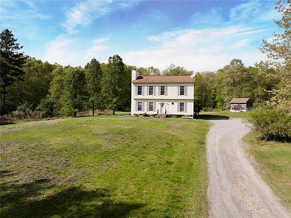 Welcome to 51 Mill Road, a charming Colonial nestled on 7+ acres in the peaceful town of Foster, RI. Built in 2004, this 1,800 sq ft home offers 3 bedrooms and 2.5 baths with a spacious, functional layout. The main floor features a cozy living room with a wood-burning fireplace and direct access to a large deck—perfect for entertaining or unwinding. The adjacent kitchen and dining area flow easily, and a main-level laundry room adds everyday convenience. Upstairs, the primary suite includes a private bath, with two additional bedrooms and a second full bath. The full basement provides a 200-amp circuit panel, a wood stove for supplemental heat, and ample storage space. A whole house generator ensures year-round peace of mind. Outside, enjoy summer days by the inground concrete pool (liner replacement needed) and take advantage of a 192 sq ft workshop shed. With an abundance of privacy, this property offers the perfect blend of rural tranquility and modern comfort.