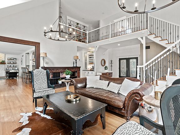 This exceptional home in the sought-after Legends of Wheaton subdivision offers luxurious living, high-end finishes, and thoughtful design throughout. A dramatic two-story entry welcomes you into the living room with vaulted ceilings and a cozy gas fireplace. The space flows into a custom kitchen-remodeled in 2021-featuring two-tone cabinetry, a large island with breakfast bar, dual built-in ovens, a cooktop with custom range hood, and a tiled backsplash. The kitchen opens to a dining area and a spacious family room with a second fireplace. The main floor also includes a private office, wallpapered powder room (2025), and a large mud/laundry room with custom built-ins (2021), providing access to two attached garages-a two-car garage and a one-car garage currently converted into a workshop. Upstairs, a dramatic catwalk with floor-to-ceiling built-ins overlooks the living room and entryway. The luxurious primary suite features two walk-in closets, dual vanities, a soaking tub, and a separate shower. The second bedroom includes its own private en suite bath, while the third and fourth bedrooms each offer walk-in closets and are connected by a Jack & Jill bath. The third bedroom also features a bonus room-ideal for a playroom, study, or additional office space. The newly remodeled basement (2025) includes a state-of-the-art home theater (currently being used as an gym), sauna, 5th bedroom, full bath and additional storage! Step outside to enjoy a covered back porch, brick paver patio, and a peaceful setting with no rear neighbors-perfect for relaxing or entertaining. Major updates include a new roof and gutters (2025), exterior paint (2025), sump pump (2021), and extensive landscaping and lighting improvements (2021-2025). Located in highly rated Wheaton schools, this move-in-ready home checks every box for luxury, comfort, and convenience. **Any furiture can be included in the sale. $$$$ in value! Seller is professional furniture designer "Kelly Kate Design", and will include custom design bar stools and chairs. Buyer's choice. $10,000 value!