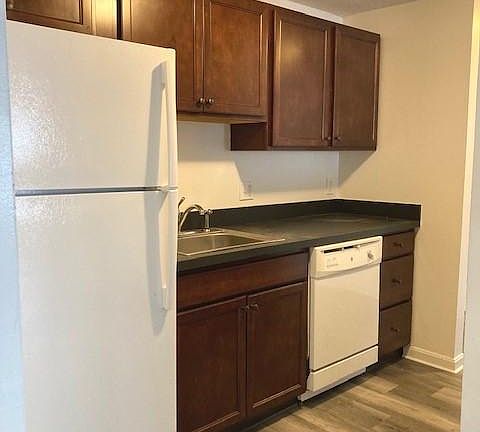 Secure building in nice residential neighborhood, easy access to public transportation, vinyl plank flooring, dishwasher, stove, refrigerator, air conditioning, laundry on premises. Sorry, no pets. No broker's fee! Owner pays for water, tenant responsible for heat. Electric heat.